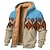男性用 トライバル フリース パーカー スウェットシャツ ファッション 日常 クルーネック アウトドア 登山 ブルー カーキ色 ジッパーを閉める 秋 冬 デザイナー