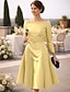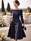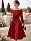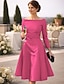 Aライン セミロング丈 膝丈 パーティードレス 二次会ドレス / カクテルドレス ウェディングゲストドレス マダムドS 長袖 ジュエル エレガント シンプル ウェディングパーティー タフタ 〜と サッシュ/リボン ソリッドカラー