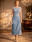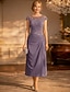 シースコラムティー丈パーティードレスカクテルドレス結婚式ゲストドレス母親のためのドレス3/4丈袖クルーネックエレガントビンテージシンプル結婚式ゲストレースソリッドカラー付き