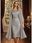 シースコラム膝丈レースドレスプロムドレスパーティードレス母親の花嫁ドレスロングスリーブクルーネックエレガントビンテージ豪華なスパンデックスレースレース刺繍付き