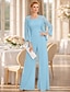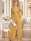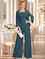 パンツスーツ 3ピーススーツ フロア丈 マダムドS 長袖 バトーネック エレガント プラスサイズ ショールが含まれています フォーマル 結婚式のゲスト シフォン ショールが含まれています 〜と ビーズ
