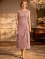 タイト/コラム アンクル丈 パーティードレス 二次会ドレス / カクテルドレス ウェディングゲストドレス マダムドS 半袖 クルーネック エレガント シンプル 結婚式のゲスト フォーマルイブニング ウェディングパーティー シフォン 〜と ソリッドカラー