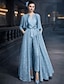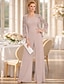 パンツスーツ 3ピーススーツ アンクル丈 マダムドS 七分袖 スクープネック エレガント きらきら&ピカピカ フォーマル 結婚式のゲスト ウェディングパーティー スパンコール ショールが含まれています 〜と リボン フリル