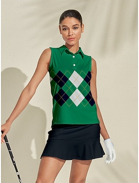 女性用 ポロシャツ グリーン ノースリーブ トップス チェック レディース ゴルフウェア ウェア アウトフィット ウェア アパレル