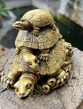 金色の樹脂風水三層亀像、三世代亀アート彫刻モデル、長寿と保護のシンボル、家の装飾
