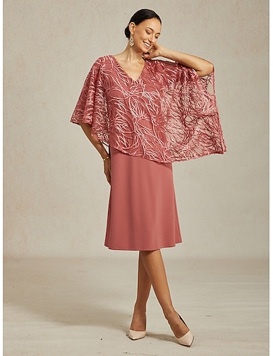 女性用 茶の長さ シフォンドレス エレガント パーティー 純色 ハーフスリーブ Vネック ピンク 夏 春