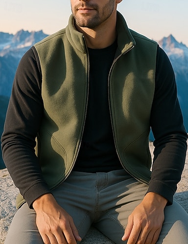 男性用 ハイキング ベスト フリースベスト ノースリーブ ベスト アウトドア 保温 ライトウェイト 高通気性 冬 ジッパー ポリエステル ブラック カーキ色 グレー 狩猟 釣り 登山