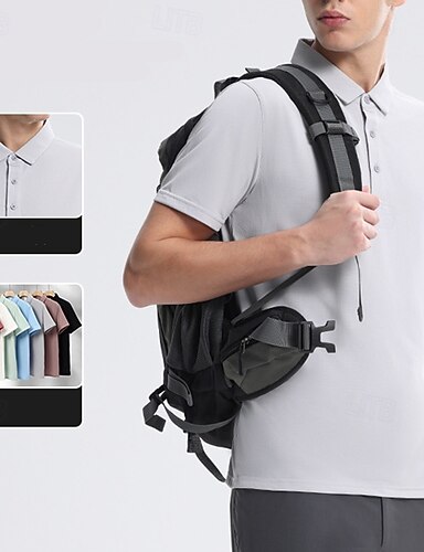 男性用 Tシャツ ポロシャツ ハイキング Tシャツ 半袖 スクエアネック シャツ トップス アウトドア 高通気性 速乾性 ライトウェイト ソフト 夏 ポリエステル ホワイト ブラック アーミーグリーン 狩猟 釣り 登山 / コンバットブーツ