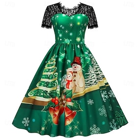 Aラインドレス ファンシークリスマスドレス 女性用 1950年代風 クリスマス パターン 大人 クリスマス マスカレード クリスマス・イブ クリスマス パーティー 大晦日 ドレス