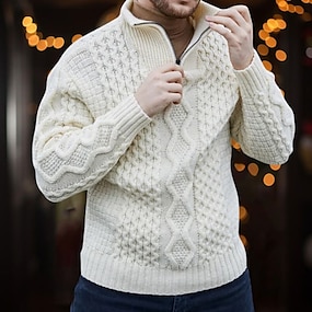 男性用 アイリッシュプルオーバー アランプルオーバー クリスマスセーター プルオーバーセーター クォータージッププルオーバーセーター リブ ケーブル ニット レギュラー ハーフジップ ニット 平織り スタンド 現代コンテンポラリー クリスマス ワーク 衣類 冬 ブラック ホワイト M L XL