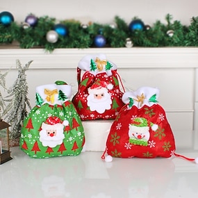 クリスマス クリエイティブ ギフトバッグ ファブリック レッド ハンドヘルド トートサック キャンディバッグ ホリデー パーティー ギフト クリスマス デコレーション 再利用可能な収納ポーチ 子供用 プレゼント ラッピング アクセサリー