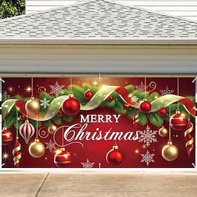 クリスマス 屋外 ガレージ ドア カバー メリー クリスマス オーナメント ボール ホリデー 大型 タペストリー 背景 パーティー 壁飾り 屋外 ガレージ ドア ホーム クリスマス フェスティバル お祝い 装飾