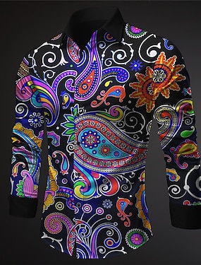 男性用 ペーズリー シャツ ボタンアップシャツ 長袖 ヴィンテージ アーティスティック デイリーウェア お出かけ 秋冬 折襟 プリント ボタンダウン パープル グリーン