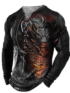 男性用 Tシャツ ファッション デザイナー 快適 シャツ グラフィック 動物 ドラゴン 長袖 シャツ ブラック カジュアル 日常 お出かけ カラー 春 & 秋 衣類 3Dプリント S M L XL 2XL 3XL