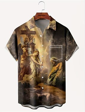 男性用 フラガール シャツ アロハシャツ 半袖 シャツ 折襟 ファッション ストリートファッション デザイナー アウトドア ストリート カジュアル アプリコット ブラック S M L