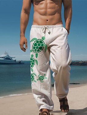 ウミガメ 海洋生物 メンズ リゾート 3D プリント カジュアル パンツ ズボン 伸縮性ウエスト ドローストリング ルーズフィット ストレートレッグ サマービーチパンツ s ~ 3xl