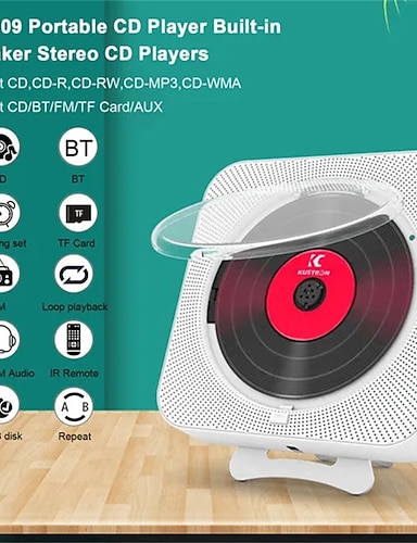 KC-909 ポータブル CD プレーヤー 内蔵スピーカー ステレオ CD プレーヤー ダブル 3.5 mm ヘッドフォン ジャック LED スクリーン 壁掛け可能 CD 音楽プレーヤー IR リモコン付き CD/BT/FM/TF カード/AUX をサポート