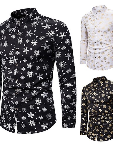 クリスマス メンズ クリスマス シーン プリント シャツ グラフィック プリント スノーフレーク ターンダウン ブラック ゴールド ホワイト 3D プリント ストリート 長袖 ボタンダウン プリント 衣類 アパレル ファッション デザイナー カジュアル ソフト