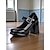 ブローグディテールが施された女性用ヴィンテージスタイルの黒と白のハイヒールパンプス。フォーマルな場面にぴったりのエレガントなドレスシューズ。