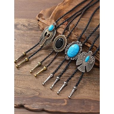 ターコイズインレイ付きメンズウエスタンカウボーイボロタイ、ヴィンテージデザイン - 調節可能なレザーコード、カジュアルにもフォーマルにも使えるカウボーイファッションアクセサリー