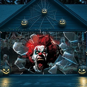 Halloween タペストリー ガレージドアカバー 大きな吊り下げ 道化師 ダークパンクゴシック パーティー 屋外 撮影背景 YD(ヤード) お化け屋敷 装飾壁ドア背景