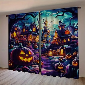 2パネルのハロウィンカーテンドレープ遮光カーテンリビングルーム寝室キッチン窓装飾断熱部屋を暗くする
