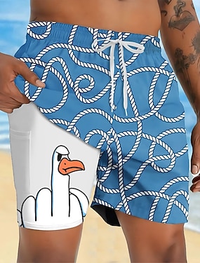 男性用 動物 おかしい あひる 裏地付きショートパンツ 2 in 1 スイムショーツ スイムショーツ ミディアムウエスト ハワイアン バケーション 祝日 ビーチウェア サイドポケット コンプレッションライナー付き 伸縮性のあるドローストリングウエスト デザイナー 衣類