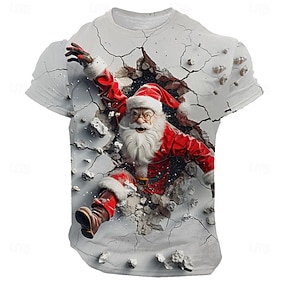 クリスマス メンズ サンタクロース 3D Tシャツ サンタクロース カジュアル ストリート スタイル 3D プリント Tシャツ スポーツ アウトドア ホリデー ホワイト 半袖 クルーネック 春&夏服 アパレル S M L XL XXL XXXL
