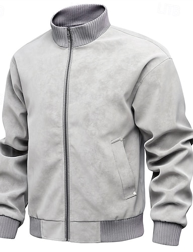 男性用 軽量ジャケット ボンバージャケット フェイクスエードジャケット ボンバーレザージャケット 日常 バケーション ポケット 秋冬 平織り ファッション クラシック スタンド レギュラー ネイビーブルー ブラウン アーミーグリーン ライトブルー ジャケット
