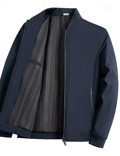 男性用 軽量ジャケット フォーマル オフィス ジッパーを閉める 春 春 & 秋 中性 日常 ネイビーブルー アーミーグリーン ジャケット