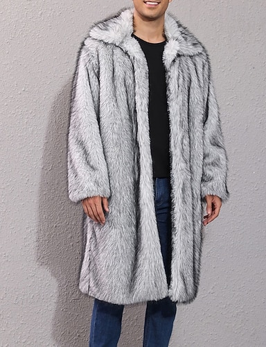 男性用 カジュアルジャケット フェイクファーコート バケーション 日常 保温 プラッシュ 秋 冬 平織り ファッション ストリートファッション ラペル ロング ホワイト イエロー キャメル グレー ジャケット