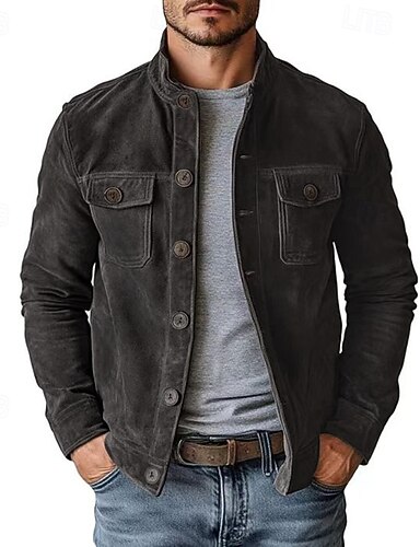 男性用 フェイクスエードジャケット ウィンドブレーカー ブラウン スエード ジャケット カジュアル カジュアル/普段着 ウィンドブレーカー ポケット 平織り 秋 冬 春 & 秋 純色 ヴィンテージ ファッション スタンド レギュラー ブラウン グリーン カーキ色 ダックグレー ジャケット