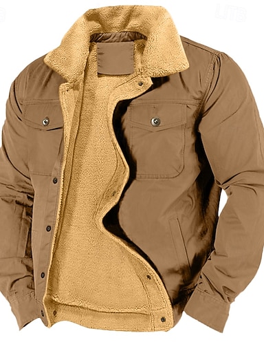 男性用 フリースの上着 カーゴジャケット バケーション カジュアル 保温 フリースライナーつき ポケット フリースカラー 冬 純色 作業服 カラー レギュラー ダークグレー ブラック ホワイト ブラウン グリーン ジャケット