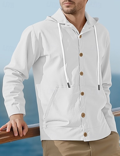 男性用 軽量ジャケット カジュアルジャケット パーカージャケット バケーション 日常 高通気性 ドローストリング ポケット 春 秋 平織り ファッション クラシック フード付き レギュラー ブラック ホワイト イエロー ネイビーブルー カーキ色 ジャケット