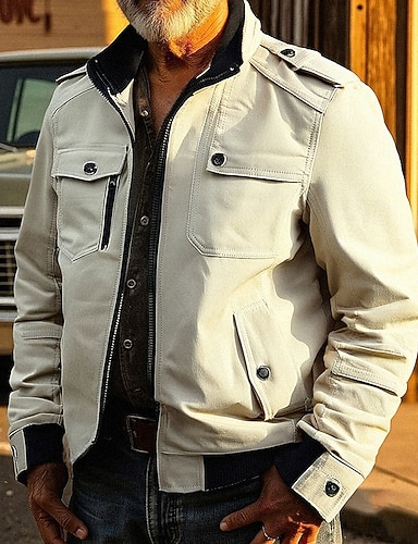 男性用 軽量ジャケット カーゴジャケット カジュアルジャケット バケーション 日常 保温 ポケット 秋 冬 平織り ファッション クラシック スタンド レギュラー ライトカーキ カーキ色 ジャケット