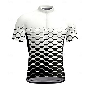 男性用 サイクリングジャージー グラフィック 幾何学模様 文字&番号 半袖 バイク ジャージー トップス 3つのリアポケット付き UV耐性 速乾性 フロントファスナー 反射性ストリップ スポーツ ホワイト 衣類