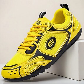 メンズのイエロースポーツスニーカーにブラックのアクセント - 軽量設計、通気性に優れ、ランニング、スポーツ、アクティブなライフスタイルに最適