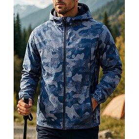 男性用 アウトドアジャケット ハイキング ジャケット レインコート アウトドア 防水 高通気性 速乾性 ライトウェイト ハイキングの服装 ハイキングウェア 春 秋 ジャケット テニス ゴルフ ランニング カモフラージュ ダークブルー