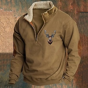 男性用 スウェットシャツ ブラック グリーン カーキ色 グレー スタンドカラー カラーブロック トナカイ パッチワーク スポーツ 日常 祝日 ポリエステル ストリートファッション ベーシック カジュアル 春 & 秋 衣類 パーカー トレーナー 長袖