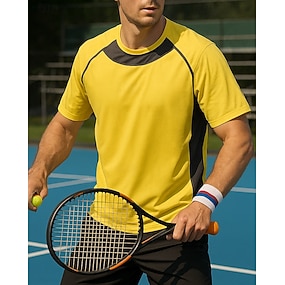 全米オープン 男性用 パッチワーク スポーツシャツ テニスシャツ テニスティー 半袖 モイスチャーコントロール 吸汗性 高通気性 テニス ゴルフ ピクルスボール クルーネック イエロー ライトグレー パープル テニスウェア