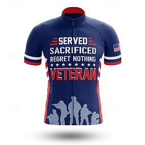 男性用 サイクリングジャージー Soldier アメリカ独立記念日 国旗 半袖 バイク Tシャツ ジャージー トップス 3つのリアポケット付き マウンテンサイクリング ロードバイク 速乾性 反射性ストリップ 吸汗性 高通気性 スポーツ ブルー 衣類