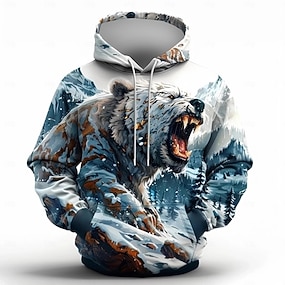 男性用 ベア フーディーズ スウェットシャツ ファッション クール 長袖 クルーネック パーティー 祝日 ストリートウェア ホワイト ドローストリング 秋 冬 デザイナー