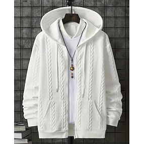 男性用 パーカー フルジップパーカー ブラック ホワイト フード付き 平織り ジャカード ポケット リブ テクスチャード加工 スポーツ 日常 祝日 ポリエステル ストリートファッション ベーシック カジュアル 春 秋 衣類 パーカー トレーナー 長袖