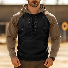 男性用 パーカー プルオーバーフーディースウェットシャツ タクティカルパーカー ブラック ライト ダックグレー 迷彩グリーン フード付き 平織り プリーツ スポーツ 日常 ストリートウェア クール カジュアル アスレチック 秋 衣類 パーカー トレーナー