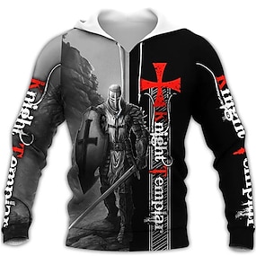 男性用 テンプル騎士団 グラフィック パーカー フーディーズ スウェットシャツ ストリートファッション デザイナー 長袖 フード付き 日常 スポーツ ブラック ダックグレー プリント 春 & 秋 デザイナー
