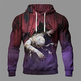 Halloween 男性用 モンスター パーカー ファッション 日常 フード付き バケーション パーティー ストリートウェア バーガンディー ドローストリング プリント 秋 冬 デザイナー