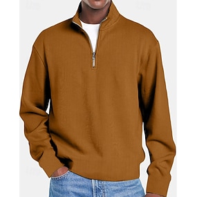 男性用 ワッフルスウェットシャツ 路肩に寄せて下さい クォータージッパースウェットシャツ ブラック アーミーグリーン ネイビーブルー カーキ色 ライト スタンドカラー ハーフジッパー カラーブロック ポケット カラーブロック ワーク スポーツ カジュアル ポリエステル ストリートファッション ベーシック カジュアル 春 & 秋 季節の変わり目 衣類 パーカー トレーナー 長袖