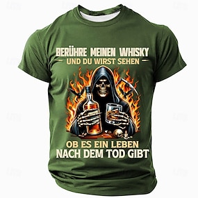 男性用グラフィックTシャツ 面白い死神「私のウイスキーに触れて、死後の世界を見てみろ」引用短袖Tシャツウイスキー好きのために