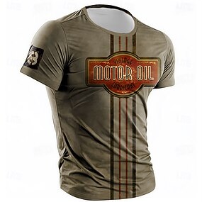 男性用 レタード Tシャツ 半袖 Tシャツ 3Dプリント クルーネック シャツ ファッション 日常 ストリート 日常 ブラック 夏 春 衣類 S M L XL XXL XXXL