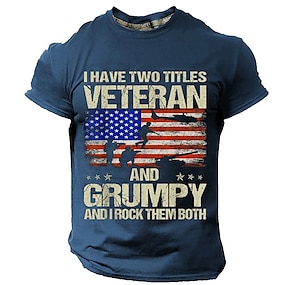 男性用 退役軍人 お父さん Tシャツ 半袖 Tシャツ 3Dプリント クルーネック シャツ ファッション 日常 ベーシック ストリート カジュアル 日常 ブラック ブルー グリーン 夏 春 オールシーズン 衣類 S M L XL XXL XXXL
